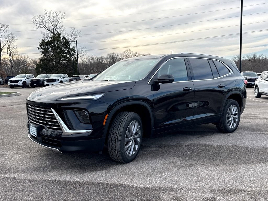 This NEW 2026 Ebony Buick Enclave Preferred 2.5L DOHC 8-Speed Automatic FWD is well equipped and includes these features and benefits: Floor Liner Package (1st and 2nd Row All-Weather Floor Liners, 3rd Row All-Weather Floor Liner, and Integrated Cargo Liner), Power Package (110-Volt Power Outlet, 2nd Row 1-Touch Flat Folding Seat, 3rd Row 60/40 Power Split-Folding Bench Seat, Head-Up Display, Heated Wiper Park, Inside Rearview Auo-Dimming Rear Camera Mirror, Memory Settings, and Universal Home Remote), FWD, 12 Speakers, 3rd row seats: split-bench, 4-Wheel Disc Brakes, ABS brakes, Air Conditioning, Alloy wheels, AM/FM radio: SiriusXM with 360L, Apple CarPlay/Android Auto, Auto High-beam Headlights, Auto-dimming door mirrors, Auto-dimming Rear-View mirror, Automatic temperature control, Bose Premium 12-Speaker Audio System with Subwoofer, Brake assist, Bumpers: body-color, Compass, Delay-off headlights, Driver 4-Way Power Lumbar Seat Adjuster, Driver 8-Way Power Seat Adjuster, Driver door bin, Driver vanity mirror, Dual front impact airbags, Dual front side impact airbags, Electronic Stability Control, Emergency communication system: OnStar and Buick connected services capable, Four wheel independent suspension, Front anti-roll bar, Front Bucket Seats, Front Center Armrest, Front dual zone A/C, Front Passenger 4-Way Power Lumbar Seat Adjuster, Front Passenger 6-Way Power Seat Adjuster, Front reading lights, Fully automatic headlights, Heated door mirrors, Heated Driver and Front Passenger Seats, Heated front seats, Heated steering wheel, Illuminated entry, Leather steering wheel, Leatherette Seat Trim, Low tire pressure warning, Navigation System, Occupant sensing airbag, Outside temperature display, Overhead airbag, Overhead console, Panic alarm, Passenger door bin, Passenger vanity mirror, Power door mirrors, Power driver seat, Power Liftgate, Power passenger seat, Power steering, Power windows, Premium audio system: Buick Infotainment System, Radio data system, Radio: Infotainment Center, Rear air conditioning, Rear anti-roll bar, Rear reading lights, Rear side impact airbag, Rear window defroster, Rear window wiper, Remote keyless entry, Security system, SiriusXM with 360L Trial Subscription, Speed control, Speed-sensing steering, Spoiler, Steering wheel mounted audio controls, Tachometer, Telescoping steering wheel, Tilt steering wheel, Traction control, Trip computer, Turn signal indicator mirrors, Variably intermittent wipers, Voltmeter, Wheels: 20 Alloy with Medium Android Finish, Wireless Apple CarPlay, and Wireless Google Android Auto.