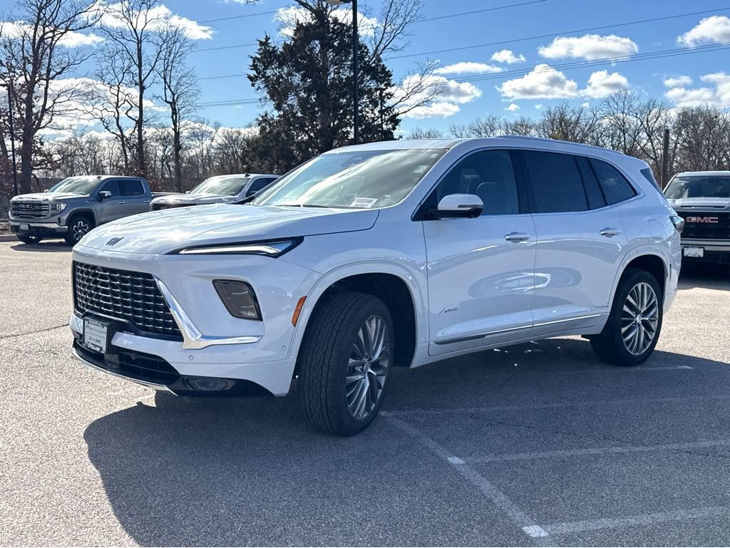 This NEW 2026 White Buick Enclave Avenir 2.5L DOHC 8-Speed Automatic FWD is well equipped and includes these features and benefits: Floor Liner Package (1st and 2nd Row All-Weather Floor Liners, 3rd Row All-Weather Floor Liner, and Integrated Cargo Liner), Front Mounting License Plate Bracket Package, Preferred Equipment Group 1SP, Super Cruise Package (Driver Attention Assist, Enhanced Automatic Parking Assist, and Super Cruise), FWD, 16 Speakers, 3rd row seats: split-bench, 4-Wheel Disc Brakes, ABS brakes, Adaptive suspension, Air Conditioning, Alloy wheels, AM/FM radio: SiriusXM with 360L, Apple CarPlay/Android Auto, Auto High-beam Headlights, Auto tilt-away steering wheel, Auto-dimming door mirrors, Auto-dimming Rear-View mirror, Automatic temperature control, Bose Performance 16-Speaker Audio System with Subwoofer, Brake assist, Bumpers: body-color, Compass, Delay-off headlights, Driver 4-Way Power Lumbar Seat Adjuster, Driver 8-Way Power Seat Adjuster, Driver door bin, Driver Massage Control with 4-Way Power Lumbar, Driver vanity mirror, Dual front impact airbags, Dual front side impact airbags, Electronic Stability Control, Emergency communication system: OnStar and Buick connected services capable, Four wheel independent suspension, Front anti-roll bar, Front Bucket Seats, Front Center Armrest, Front dual zone A/C, Front Passenger 4-Way Power Lumbar Seat Adjuster, Front Passenger 6-Way Power Seat Adjuster, Front Passenger Massage Control with 4-Way Power Lumbar, Front reading lights, Fully automatic headlights, Garage door transmitter, Heads-Up Display, Heated door mirrors, Heated Driver and Front Passenger Seats, Heated front seats, Heated rear seats, Heated steering wheel, Illuminated entry, Leather steering wheel, Low tire pressure warning, Memory seat, Memory Settings, Navigation System, Occupant sensing airbag, Outside temperature display, Overhead airbag, Overhead console, Panic alarm, Passenger door bin, Passenger vanity mirror, Power door mirrors, Power driver seat, Power Liftgate, Power moonroof, Power passenger seat, Power steering, Power windows, Premium audio system: Buick Infotainment System, Quilted and Perforated Leather-Appointed Seat Trim, Radio data system, Radio: Infotainment Center, Rain sensing wipers, Rear air conditioning, Rear anti-roll bar, Rear reading lights, Rear side impact airbag, Rear window defroster, Rear window wiper, Remote keyless entry, Security system, SiriusXM with 360L Trial Subscription, Speed control, Speed-sensing steering, Spoiler, Steering wheel memory, Steering wheel mounted audio controls, Tachometer, Telescoping steering wheel, Tilt steering wheel, Traction control, Trip computer, Turn signal indicator mirrors, Variably intermittent wipers, Ventilated Driver and Front Passenger Seats, Ventilated front seats, Ventilated rear seats, Voltmeter, Wheels: 22 Alloy with Avenir Pearl Nickel Finish, Wireless Apple CarPlay, and Wireless Google Android Auto.