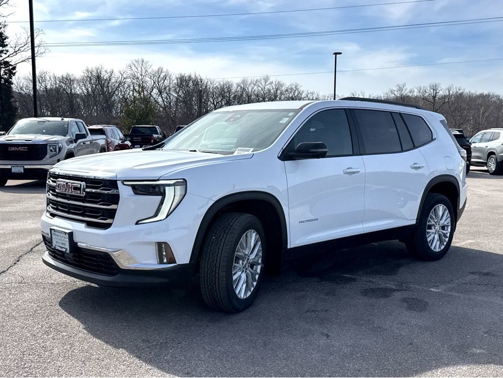 This NEW 2026 Summit White GMC Acadia Elevation 2.5L DOHC 8-Speed Automatic FWD is well equipped and includes these features and benefits: Elevation Premium Package (3-Channel Programmable Universal Home Remote, 6-Way Power Front Passenger Seat Adjuster, 7-Passenger Seating (2-2-3 Seating Configuration), CoreTec Seat Trim, and Front Passenger Power Lumbar Seat Adjuster), Floor Liner Package (1st and 2nd Row All-Weather Floor Liner, 3rd Row All-Weather Floor Liner, and Integrated Cargo Liner), Luxury Package (8 Diagonal Head-Up Display, Heated Rear Outboard Seating Positions, Heated Wiper Park, and Laminated Acoustic Glass), FWD, After Dk Coretec Cloth, 12 Speakers, 18 x 7.5 Aluminum Wheels, 3.49 Final Drive Axle Ratio, 3rd row seats: split-bench, 4-Way Manual Front Passenger Seat Adjuster, 4-Wheel Disc Brakes, 8-Passenger Seating (2-3-3 Seating Configuration), 8-Way Power Driver Seat Adjuster, ABS brakes, Air Conditioning, Alloy wheels, AM/FM radio: SiriusXM with 360L, Apple CarPlay/Android Auto, Auto High-beam Headlights, Automatic temperature control, Bodyside moldings, Bose Premium 12-Speaker System with Sub-Woofer, Brake assist, Bumpers: body-color, Cloth Seat Trim, Compass, Delay-off headlights, Driver 2-Way Power Lumbar Seat Adjuster, Driver door bin, Driver vanity mirror, Dual front impact airbags, Dual front side impact airbags, Electronic Stability Control, Emergency communication system: OnStar Services capable, Exterior Parking Camera Rear, Four wheel independent suspension, Front anti-roll bar, Front Bucket Seats, Front Center Armrest, Front dual zone A/C, Front fog lights, Front reading lights, Fully automatic headlights, Heated door mirrors, Heated Driver and Front Passenger Seats, Heated front seats, Heated steering wheel, Illuminated entry, Leather steering wheel, Low tire pressure warning, Molded Front and Rear Splash Guards, Navigation System, Occupant sensing airbag, Outside temperature display, Overhead airbag, Overhead console, Panic alarm, Passenger door bin, Passenger vanity mirror, Power door mirrors, Power driver seat, Power Liftgate, Power steering, Power windows, Radio data system, Radio: 15 Diagonal Premium GMC Infotainment System, Rear air conditioning, Rear anti-roll bar, Rear reading lights, Rear seat center armrest, Rear side impact airbag, Rear window defroster, Rear window wiper, Remote keyless entry, Security system, SiriusXM with 360L, Speed control, Speed-sensing steering, Split folding rear seat, Spoiler, Sport steering wheel, Steering wheel mounted audio controls, Tachometer, Telescoping steering wheel, Tilt steering wheel, Traction control, Trip computer, Turn signal indicator mirrors, Variably intermittent wipers, and Voltmeter.