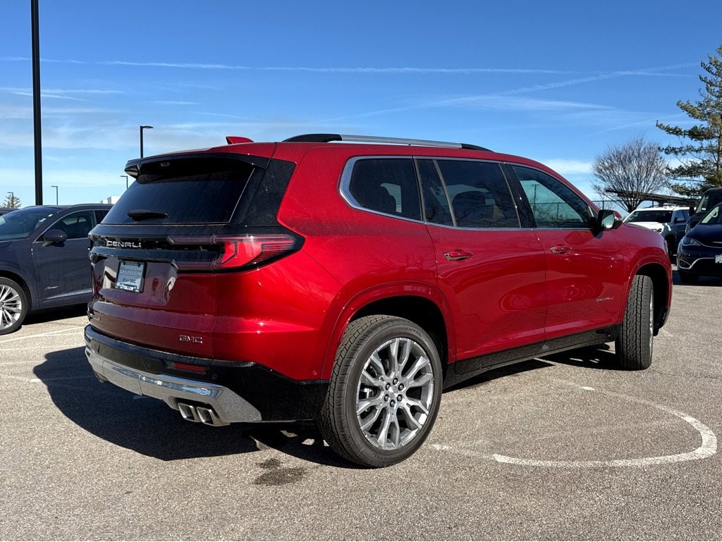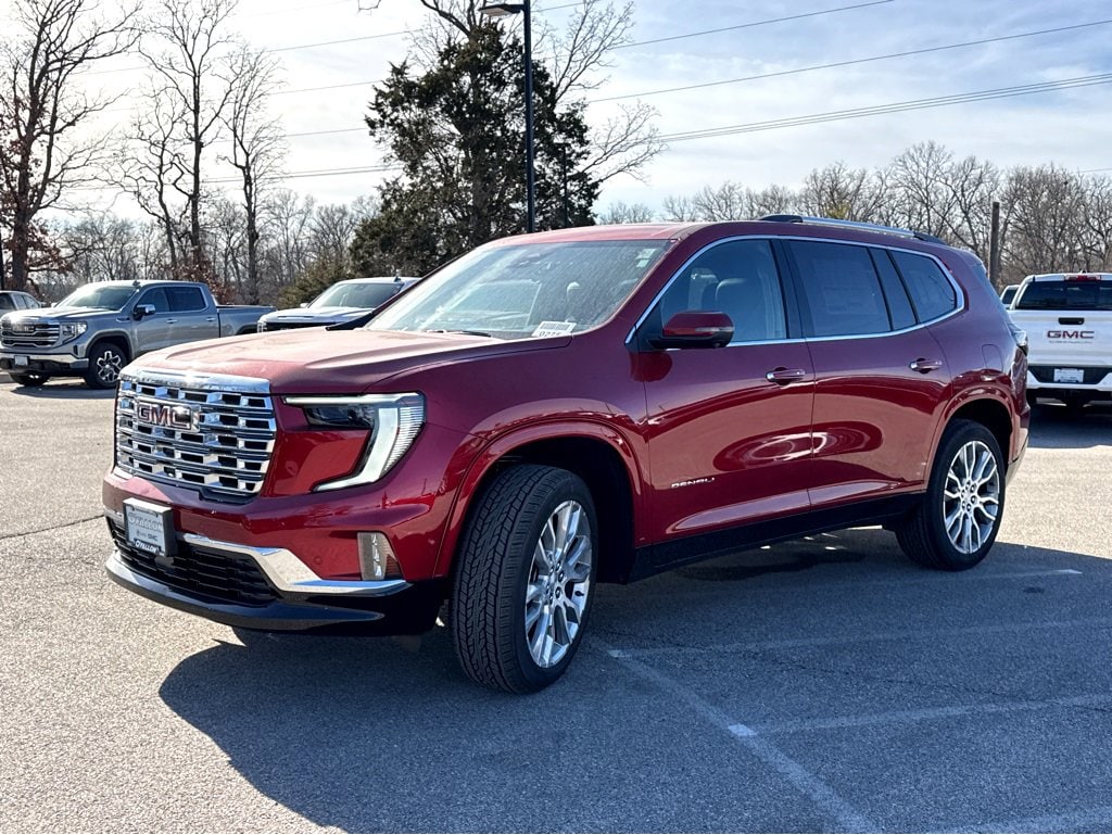This NEW 2026 Volcanic Red GMC Acadia Denali 2.5L DOHC 8-Speed Automatic AWD is well equipped and includes these features and benefits: Memory Package, Super Cruise Package (3 Years of OnStar One, Driver Attention Assist, Enhanced Automatic Parking Assist, and Super Cruise), AWD, After Dk Perforated Lth-A Leather, 12 Speakers, 3.49 Final Drive Axle Ratio, 3rd Row 60/40 Power Split-Folding Bench, 3rd row seats: split-bench, 4-Wheel Disc Brakes, 6-Way Power Front Passenger Seat Adjuster, 7-Passenger Seating (2-2-3 Seating Configuration), 8-Way Power Driver Seat Adjuster, ABS brakes, Air Conditioning, Alloy wheels, AM/FM radio: SiriusXM with 360L, Apple CarPlay/Android Auto, Auto High-beam Headlights, Auto-dimming door mirrors, Auto-dimming Rear-View mirror, Automatic temperature control, Bodyside moldings, Bose Premium 12-Speaker System w/Sub-Woofer, Brake assist, Bumpers: body-color, Compass, Delay-off headlights, Driver 4-Way Power Lumbar Seat Adjuster, Driver door bin, Driver vanity mirror, Dual front impact airbags, Dual front side impact airbags, Electronic Stability Control, Emergency communication system: OnStar Services capable, Exterior Parking Camera Rear, Four wheel independent suspension, Front anti-roll bar, Front Bucket Seats, Front Center Armrest, Front dual zone A/C, Front fog lights, Front Passenger 4-Way Power Lumbar Seat Adjuster, Front reading lights, Fully automatic headlights, Garage door transmitter, Genuine wood console insert, Genuine wood dashboard insert, Genuine wood door panel insert, Heads-Up Display, Heated & Ventilated Driver & Front Passenger Seats, Heated door mirrors, Heated Driver & Front Passenger Seats, Heated front seats, Heated rear seats, Heated steering wheel, Illuminated entry, Leather steering wheel, Low tire pressure warning, Memory seat, Navigation System, Occupant sensing airbag, Outside temperature display, Overhead airbag, Overhead console, Panic alarm, Panoramic Power Sunroof w/Sunshade, Passenger door bin, Passenger vanity mirror, Perforated Leather-Appointed Seat Trim, Performance Suspension, Power door mirrors, Power driver seat, Power Liftgate, Power passenger seat, Power steering, Power windows, Radio data system, Radio: 15 Premium GMC Infotainment System, Rain sensing wipers, Rear air conditioning, Rear anti-roll bar, Rear reading lights, Rear side impact airbag, Rear window defroster, Rear window wiper, Remote keyless entry, Security system, SiriusXM w/360L, Speed control, Speed-sensing steering, Split folding rear seat, Spoiler, Sport steering wheel, Steering wheel memory, Steering wheel mounted audio controls, Tachometer, Telescoping steering wheel, Tilt steering wheel, Traction control, Trip computer, Turn signal indicator mirrors, Variably intermittent wipers, Ventilated front seats, Voltmeter, Wheels: 20 x 8 Pearl Nickel Machined Aluminum, and Wheels: 22 x 8.5 Pearl Nickel Machined Aluminum.
