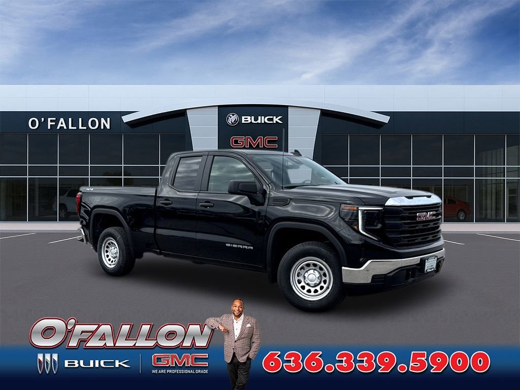 This NEW 2026 Onyx Black GMC Sierra 1500 Pro EcoTec3 5.3L V8 10-Speed Automatic 4WD is well equipped and includes these features and benefits: Standard Suspension Package, 10-Speed Automatic, 4WD, Jet Blk Vinyl, 2 Charge/Data USB Ports, 3.42 Rear Axle Ratio, 4-Way Manual Driver Seat Adjuster, 4-Way Manual Passenger Seat Adjuster, 4-Wheel Disc Brakes, 6 Speakers, 6-Speaker Audio System Feature, ABS brakes, Air Conditioning, AM/FM radio, Apple CarPlay/Android Auto, Auto High-beam Headlights, Automatic Emergency Braking, Brake assist, Buckle to Drive, Bumpers: chrome, Chrome Header with Flat Black Grille Insert Bars, Compass, Delay-off headlights, Driver door bin, Dual front impact airbags, Dual front side impact airbags, Electronic Stability Control, Emergency communication system: OnStar, Following Distance Indicator, Forward Collision Alert, Front 40/20/40 Split-Bench Seat, Front anti-roll bar, Front Center Armrest w/Storage, Front Frame-Mounted Black Recovery Hooks, Front Pedestrian Braking, Front reading lights, Front wheel independent suspension, Fully automatic headlights, HD Rear Vision Camera, Illuminated entry, IntelliBeam Automatic High Beam on/Off, Lane Keep Assist with Lane Departure Warning, Low tire pressure warning, Occupant sensing airbag, OnStar Services Capable, Outside temperature display, Overhead airbag, Overhead console, Panic alarm, Passenger door bin, Passenger vanity mirror, Power Door Locks, Power Front Windows with Driver Express Up/Down, Power Front Windows with Passenger Express Down, Power Rear Windows with Express Down, Power steering, Power windows, Push Button Start, Radio data system, Radio: GMC Infotainment Audio System, Rear reading lights, Rear step bumper, Remote Keyless Entry, Remote keyless entry, Solar Absorbing Tinted Glass, Speed control, Speed-sensing steering, Split folding rear seat, Tachometer, Tilt steering wheel, Traction control, Trip computer, Variably intermittent wipers, Vinyl Seat Trim, Voltmeter, Wheels: 17 x 8 Silver Painted Steel, Wi-Fi Hotspot Capable, and Wireless Apple CarPlay/Wireless Android Auto.