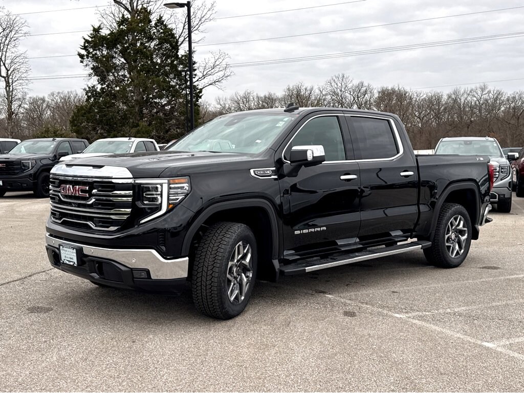 This NEW 2026 Onyx Black GMC Sierra 1500 SLT EcoTec3 5.3L V8 10-Speed Automatic 4WD is well equipped and includes these features and benefits: High Capacity Suspension Package, Preferred Equipment Group 4SA (120-Volt Bed Mounted Power Outlet, 120-Volt Interior Power Outlet, 170 Amp Alternator, 2 Charge/Data USB Ports, 2 Type-C Charge-Only Rear USB Ports, 6-Speaker Audio System Feature, Auto-Locking Rear Differential, Auxiliary External Transmission Oil Cooler, Chrome Header & Chrome Grille Insert Bars, Color-Keyed Carpeting Floor Covering, Deep-Tinted Glass, Electric Rear-Window Defogger, Front Frame-Mounted Black Recovery Hooks, Front Rain-Sensing Wipers, HD Rear Vision Camera, Integrated Trailer Brake Controller, Keyless Open & Start, LED Cargo Area Lighting, Manual Tilt-Wheel & Telescoping Steering Column, OnStar Services Capable, Perimeter Lighting, Power Door Locks, Power Front Passenger Windows w/Express Up/Down, Power Front Windows w/Driver Express Up/Down, Power Rear Windows w/Express Down, Push Button Start, Rear Wheelhouse Liners, Remote Vehicle Starter System, SiriusXM w/360L Trial Subscription, Steering Wheel Audio Controls, Theft Deterrent System (Unauthorized Entry), and Wi-Fi Hotspot Capable), ProGrade Trailering System (Hitch View and In-Vehicle Trailering System App), Sierra Safety Plus Package (HD Surround Vision, Rear Cross Traffic Braking, Rear Pedestrian Detection, Safety Alert Seat, Trailer Camera Provisions, Trailer Side Blind Zone Alert, and Ultrasonic Front & Rear Park Assist), SLT Convenience Package (2 Charge/Data USB Ports Inside Center Console, Electronic Precision Shift, Floor-Mounted Center Console, Front Bucket Seats, Power Rake & Telescoping Steering Column, Premium Bose 7-Speaker Sound System, Ventilated Driver & Front Passenger Seats, and Wireless Charging), SLT Preferred Package (Adaptive Cruise Control, Heated 2nd Row Outboard Seats, Power Sliding Rear Window w/Rear Defogger, and Universal Home Remote), Standard Suspension Package, Trailering Package (Hitch Guidance), X31 Off-Road & Protection Package (All-Weather Floor Liner (LPO) and Spray-On Pickup Bedliner w/GMC Logo), X31 Off-Road Package (Dual Exhaust System, Heavy-Duty Air Filter, Hill Descent Control, Off-Road Suspension, and X31 Hard Badge), 10-Speed Automatic, 4WD, Jet Blk Perforated Lth-Ap Leather, 10-Way Power Driver Seat Adjuster w/Lumbar, 10-Way Power Passenger Seat Adjuster w/Lumbar, 20 Polished Aluminum Wheels, 3.23 Rear Axle Ratio, 4-Wheel Disc Brakes, 6 Speakers, ABS brakes, Air Conditioning, Alloy wheels, AM/FM radio: SiriusXM with 360L, Apple CarPlay/Android Auto, Auto High-beam Headlights, Auto-dimming door mirrors, Auto-dimming Rear-View mirror, Automatic Emergency Braking, Automatic temperature control, Brake assist, Buckle to Drive, Bumpers: chrome, Chrome Wheel To Wheel Assist Steps, Compass, Delay-off headlights, Driver door bin, Driver Memory, Driver vanity mirror, Dual front impact airbags, Dual front side impact airbags, Electronic Stability Control, Emergency communication system: OnStar, Following Distance Indicator, Forward Collision Alert, Front & Rear Black Molded Splash Guards (LPO), Front 40/20/40 Split-Bench Seat, Front anti-roll bar, Front Center Armrest w/Storage, Front dual zone A/C, Front fog lights, Front License Plate Kit, Front Pedestrian Braking, Front reading lights, Front wheel independent suspension, Fully automatic headlights, Heated door mirrors, Heated Driver & Front Outboard Passenger Seating, Heated front seats, Heated steering wheel, Illuminated entry, IntelliBeam Automatic High Beam On/Off, Lane Keep Assist w/Lane Departure Warning, Low tire pressure warning, Memory seat, Navigation System, Occupant sensing airbag, Outside temperature display, Overhead airbag, Overhead console, Panic alarm, Passenger door bin, Passenger vanity mirror, Perf Leather-Appoin Price includes: $1500 - Bonus Cash. Exp. 01/02/2026 $1500 - Purchase Allowance. Exp.