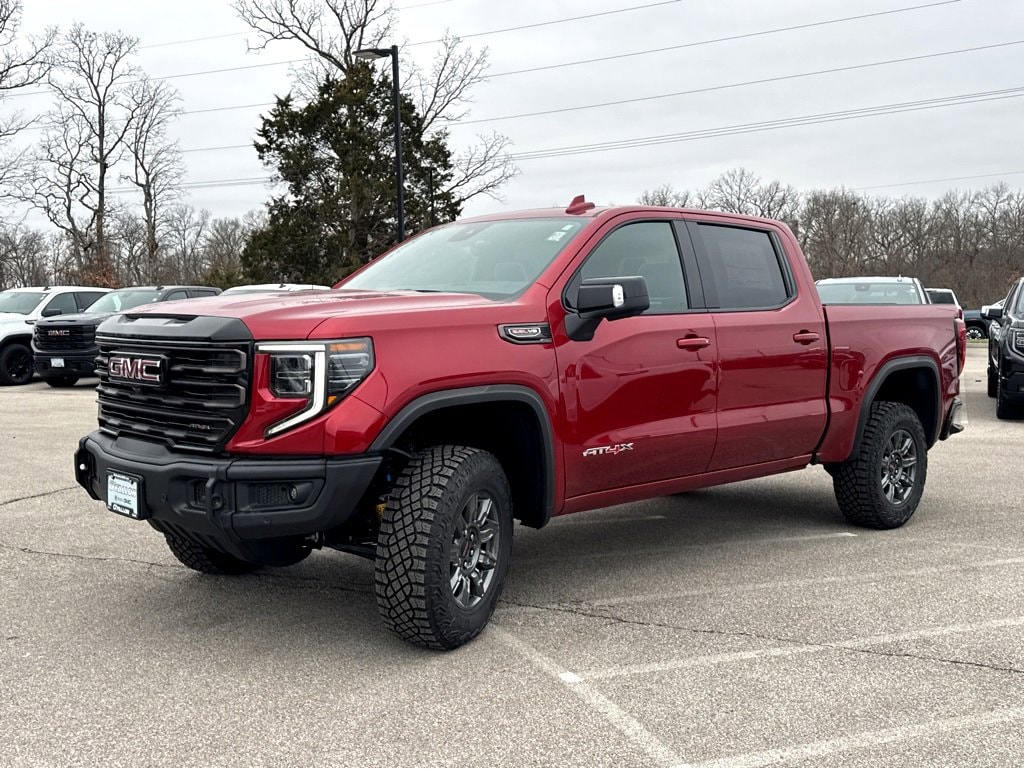 This NEW 2026 Volcanic Red GMC Sierra 1500 AT4X EcoTec3 6.2L V8 10-Speed Automatic 4WD is well equipped and includes these features and benefits: Preferred Equipment Group 4SG (120-Volt Bed Mounted Power Outlet, 120-Volt Interior Power Outlet, 2 Charge/Data USB Ports Inside Center Console, 2 Type-C Charge-Only Rear USB Ports, 2 USB Ports, Bed View Camera, Bose Premium Series w/12-Speaker System, Color-Keyed Carpeting Floor Covering, Deep-Tinted Glass, Driver-Selectable Full-Locking Front Differential, Driver-Selectable Full-Locking Rear Differential, Electric Rear-Window Defogger, Floor-Mounted Center Console, Front Prem Floor Liners w/Removable Carpet Insert, Front Rain-Sensing Wipers, Gloss Black Header w/Drk Nickel Grille Insert Bars, HD Surround Vision, Heated 2nd Row Outboard Seats, Heated Driver & Front Outboard Passenger Seating, Heavy-Duty Air Filter, Hill Descent Control, Hitch View, In-Vehicle Trailering System App, Integrated Trailer Brake Controller, Keyless Open & Start, LED Cargo Area Lighting, Multicolor 15 Diagonal Head-Up Display, MultiPro Tailgate Audio System by Kicker (LPO), OnStar Services Capable, Perimeter Lighting, Power Door Locks, Power Front Passenger Windows w/Express Up/Down, Power Front Windows w/Driver Express Up/Down, Power Rake & Telescoping Steering Column, Power Rear Windows w/Express Down, Power Sliding Rear Window w/Rear Defogger, Power Sunroof, Push Button Start, Rear Cross Traffic Braking, Rear Pedestrian Detection, Rear Prem Floor Liners w/Removable Carpet Insert, Rear Wheelhouse Liners, Remote Vehicle Starter System, SiriusXM w/360L Trial Subscription, Spray-On Pickup Bedliner w/GMC Logo, Steering Wheel Audio Controls, Theft Deterrent System (Unauthorized Entry), Trailer Camera Provisions, Trailer Side Blind Zone Alert, Trailer Tire Pressure Monitor System, Ultrasonic Front & Rear Park Assist, Universal Home Remote, Ventilated Driver & Front Passenger Seats, Wi-Fi Hotspot Capable, and Wireless Charging), Trailering Package (Hitch Guidance), 10-Speed Automatic, 4WD, Obsidian Rush Leather, 12 Speakers, 16-Way Power Driver Seat Adjuster w/Lumbar, 16-Way Power Passenger Seat Adjuster w/Lumbar, 170 Amp Alternator, 220 Amp Alternator, 3.23 Rear Axle Ratio, 4-Wheel Disc Brakes, ABS brakes, Air Conditioning, Alloy wheels, AM/FM radio: SiriusXM with 360L, Apple CarPlay/Android Auto, Auto High-beam Headlights, Auto-dimming door mirrors, Auto-dimming Rear-View mirror, Automatic Emergency Braking, Automatic temperature control, Auxiliary External Transmission Oil Cooler, Block heater, Brake assist, Buckle to Drive, Compass, Delay-off headlights, Driver door bin, Driver Memory, Driver vanity mirror, Dual Active Exhaust, Dual front impact airbags, Dual front side impact airbags, Electronic Stability Control, Emergency communication system: OnStar, External Engine Oil Cooling, Following Distance Indicator, Forward Collision Alert, Front anti-roll bar, Front Bucket Seats, Front Center Armrest, Front dual zone A/C, Front fog lights, Front License Plate Kit, Front Pedestrian Braking, Front reading lights, Front wheel independent suspension, Full Grain Leather Seat Trim, Fully automatic headlights, Garage door transmitter, Genuine wood dashboard insert, Genuine wood door panel insert, Heads-Up Display, Heated door mirrors, Heated front seats, Heated rear seats, Heated steering wheel, Illuminated entry, IntelliBeam Automatic High Beam On/Off, Lane Keep Assist w/Lane Departure Warning, Leather steering wheel, Low tire pressure warning, Memory seat, Navigation System, Occupant sensing airbag, Off-Road Suspension, Outside temperature display, Overhead airbag, Overhead console, Panic alarm, Passenger door bin, Passenger vanity mirror, Power door mirrors, Power driver seat, Power moonroof, Power passenger seat, Power steering, Power windows, Radio data system, Radio: Premium GMC Infotainment Audio System, Rain sen Price includes: $1750 - Purchase Allowance. Exp.