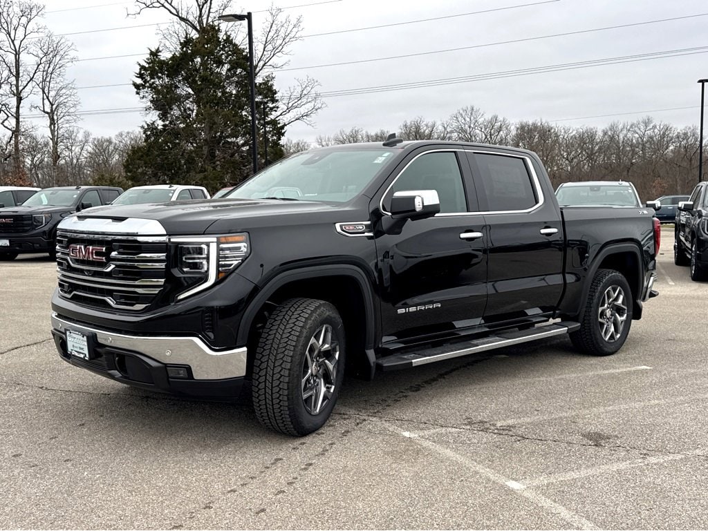 This NEW 2026 Onyx Black GMC Sierra 1500 SLT EcoTec3 6.2L V8 10-Speed Automatic 4WD is well equipped and includes these features and benefits: High Capacity Suspension Package, ProGrade Trailering System (Hitch View and In-Vehicle Trailering System App), Sierra Safety Plus Package (HD Surround Vision, Rear Cross Traffic Braking, Rear Pedestrian Detection, Safety Alert Seat, Trailer Camera Provisions, Trailer Side Blind Zone Alert, and Ultrasonic Front & Rear Park Assist), SLT Convenience Package (2 Charge/Data USB Ports Inside Center Console, Electronic Precision Shift, Floor-Mounted Center Console, Front Bucket Seats, Power Rake & Telescoping Steering Column, Premium Bose 7-Speaker Sound System, Ventilated Driver & Front Passenger Seats, and Wireless Charging), SLT Preferred Package (Adaptive Cruise Control, Heated 2nd Row Outboard Seats, Power Sliding Rear Window w/Rear Defogger, and Universal Home Remote), SLT Premium Plus Package (Chrome Wheel To Wheel Assist Steps and Spray-On Pickup Bedliner w/GMC Logo), Standard Suspension Package, Trailering Package (Hitch Guidance), X31 Off-Road & Protection Package (All-Weather Floor Liner (LPO)), X31 Off-Road Package (Dual Exhaust System, Heavy-Duty Air Filter, Hill Descent Control, Off-Road Suspension, and X31 Hard Badge), 10-Speed Automatic, 4WD, Jet Blk Perforated Lth-Ap Leather, 10-Way Power Driver Seat Adjuster w/Lumbar, 10-Way Power Passenger Seat Adjuster w/Lumbar, 120-Volt Bed Mounted Power Outlet, 120-Volt Interior Power Outlet, 170 Amp Alternator, 2 Charge/Data USB Ports, 2 Type-C Charge-Only Rear USB Ports, 20 Polished Aluminum Wheels, 3.23 Rear Axle Ratio, 4-Wheel Disc Brakes, 6 Speakers, 6-Speaker Audio System Feature, ABS brakes, Air Conditioning, Alloy wheels, AM/FM radio: SiriusXM with 360L, Apple CarPlay/Android Auto, Auto High-beam Headlights, Auto-dimming door mirrors, Auto-dimming Rear-View mirror, Auto-Locking Rear Differential, Automatic Emergency Braking, Automatic temperature control, Auxiliary External Transmission Oil Cooler, Brake assist, Buckle to Drive, Bumpers: chrome, Chrome Header & Chrome Grille Insert Bars, Color-Keyed Carpeting Floor Covering, Compass, Deep-Tinted Glass, Delay-off headlights, Driver door bin, Driver Memory, Driver vanity mirror, Dual front impact airbags, Dual front side impact airbags, Electric Rear-Window Defogger, Electronic Stability Control, Emergency communication system: OnStar, Following Distance Indicator, Forward Collision Alert, Front & Rear Black Molded Splash Guards (LPO), Front 40/20/40 Split-Bench Seat, Front anti-roll bar, Front Center Armrest w/Storage, Front dual zone A/C, Front fog lights, Front Frame-Mounted Black Recovery Hooks, Front Pedestrian Braking, Front Rain-Sensing Wipers, Front reading lights, Front wheel independent suspension, Fully automatic headlights, HD Rear Vision Camera, Heated door mirrors, Heated Driver & Front Outboard Passenger Seating, Heated front seats, Heated steering wheel, Illuminated entry, Integrated Trailer Brake Controller, IntelliBeam Automatic High Beam On/Off, Keyless Open & Start, Lane Keep Assist w/Lane Departure Warning, LED Cargo Area Lighting, Low tire pressure warning, Manual Tilt-Wheel & Telescoping Steering Column, Memory seat, Navigation System, Occupant sensing airbag, OnStar Services Capable, Outside temperature display, Overhead airbag, Overhead console, Panic alarm, Passenger door bin, Passenger vanity mirror, Perf Leather-Appointed Front Outboard Seat Trim, Perimeter Lighting, Power Door Locks, Power door mirrors, Power driver seat, Power Front Passenger Windows w/Express Up/Down, Power Front Windows w/Driver Express Up/Down, Power passenger seat, Power Rear Windows w/Express Down, Power steering, Power Sunroof, Power windows, Push Button Start, Radio data system, Radio: Premium GMC Infotainment Audio System, Rain sensing wipers, Rear reading lights, Rear seat center Price includes: $1750 - Purchase Allowance. Exp.