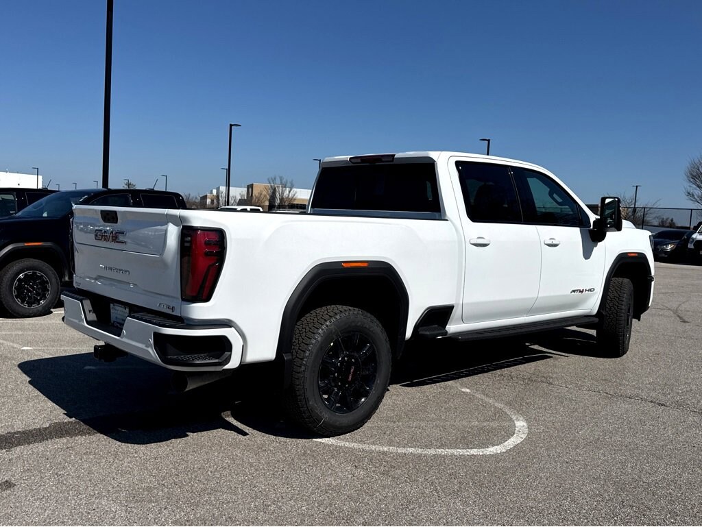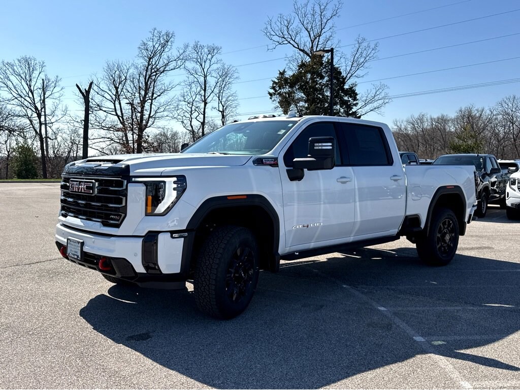 This NEW 2026 Summit White GMC Sierra 2500HD AAT4 Duramax 6.6L V8 Turbodiesel 10-Speed Automatic 4WD is well equipped and includes these features and benefits: AT4 Preferred Package (LED Smoked Amber Roof Marker Lamps and Universal Home Remote), AT4 Premium Plus Package, Gooseneck/5th Wheel Prep Package, X31 Off-Road Package (Hill Descent Control and Off-Road Suspension), 10-Speed Automatic, 4WD, Jet Blk With Kalahari Acc Leather, 10-Way Power Driver Seat Adjuster with Lumbar, 10-Way Power Passenger Seat Adjuster with Lumbar, 120-Volt Bed Mounted Power Outlet, 120-Volt Instrument Panel Power Outlet, 1st and 2nd Rows All-Weather Floor Liners, 2 Charge-Only Rear USB Ports, 2 Charge/Data USB Ports Inside Center Console, 2 USB Ports, 2-Speed Active Transfer Case, 4-Wheel Disc Brakes, 7 Speakers, ABS brakes, Air Conditioning, Alloy wheels, AM/FM radio: SiriusXM with 360L, Apple CarPlay/Android Auto, Auto High-beam Headlights, Auto-dimming door mirrors, Auto-dimming Rear-View mirror, Automatic Emergency Braking, Automatic temperature control, Bed View Camera with Two Trailer Camera Provisions, Black Front and Rear Molded Splash Guards, Bose Premium 7-Speaker Sound System, Brake assist, Buckle to Drive, Bumpers: body-color, Compass, Deep-Tinted Glass, Delay-off headlights, Driver door bin, Driver Memory, Driver vanity mirror, Dual front impact airbags, Dual front side impact airbags, Electric Rear-Window Defogger, Electronic Stability Control, Emergency communication system: OnStar, Floor-Mounted Center Console, Following Distance Indicator, Forward Collision Alert, Front anti-roll bar, Front Bucket Seats, Front Center Armrest, Front dual zone A/C, Front fog lights, Front Pedestrian Braking, Front Premium Floor Liners with Removable Carpet Insert, Front Rain-Sensing Wipers, Front reading lights, Front wheel independent suspension, Fully automatic headlights, Gloss Black Header Grille and Grille Insert Bars, HD Surround Vision, Heated 2nd Row Outboard Seats, Heated door mirrors, Heated Driver and Front Outboard Passenger Seats, Heated front seats, Heated rear seats, Heated steering wheel, Heavy-Duty 80 Amp Battery, Hitch Guidance with Hitch View, Illuminated entry, in-Vehicle Trailering System App, IntelliBeam Automatic High Beam on/Off, Keyless Open and Start, Lane Departure Warning System, LED Cargo Area Lighting, Low tire pressure warning, Manual Tilt-Wheel/Telescoping Steering Column, Memory seat, Occupant sensing airbag, Off-Road High Clearance Step, OnStar Services Capable, Outside temperature display, Overhead airbag, Overhead console, Panic alarm, Passenger door bin, Passenger vanity mirror, Perforated Leather-Appointed Front Seat Trim, Pickup Box, Power door mirrors, Power driver seat, Power Front Passenger Windows with Express Up/Down, Power passenger seat, Power steering, Power windows, Premium audio system: Premium GMC Infotainment System, Push Button Start, Radio: AM/FM Stereo with Premium GMC Infotainment System, Rain sensing wipers, Rear Cross Traffic Alert, Rear Premium Floor Liners with Removable Carpet Insert, Rear reading lights, Rear seat center armrest, Rear step bumper, Rear Wheelhouse Liners, Rear window defroster, Remote keyless entry, Remote Vehicle Starter System, Safety Alert Seat, Security system, SiriusXM with 360L Trial Subscription, Speed control, Speed-sensing steering, Split folding rear seat, Spray-on Pickup Bedliner with GMC Logo, Steering Wheel Audio Controls, Steering wheel mounted audio controls, Tachometer, Telescoping steering wheel, Tilt steering wheel, Traction control, Trailer Cam Provisions and Trailer Viewing Software, Trailer Side Blind Zone Alert, Trip computer, Turn signal indicator mirrors, Ultrasonic Front and Rear Park Assist, Unauthorized Entry Theft-Deterrent System, Variably intermittent wipers, Ventilated Driver and Front Passenger Seats, Ventilated front seats, Voltmeter, Wheels: 20 High Gloss Black 8 Spokes Aluminum, Price includ