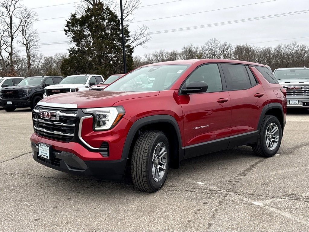 This NEW 2026 Volcanic Red GMC Terrain Elevation 1.5L DOHC CVT FWD is well equipped and includes these features and benefits: 4-Wheel Disc Brakes, 5.81 Final Drive Axle Ratio, 6 Speakers, 6-Speaker Audio System Feature, ABS brakes, Air Conditioning, Alloy wheels, AM/FM radio: SiriusXM, Auto High-beam Headlights, Automatic temperature control, Brake assist, Bumpers: body-color, Compass, Delay-off headlights, Driver 6-Way Manual Seat Adjuster, Driver and Front Passenger Heated Seats, Driver door bin, Driver vanity mirror, Dual front impact airbags, Dual front side impact airbags, Electronic Stability Control, Emergency communication system: OnStar and GMC connected services capable, Four wheel independent suspension, Front All-Weather Floor Liners, Front and Rear Molded Splash Guards, Front anti-roll bar, Front Bucket Seats, Front Center Armrest, Front Passenger 4-Way Manual Seat Adjuster, Front reading lights, Fully automatic headlights, Heated door mirrors, Heated front seats, Heated steering wheel, Illuminated entry, Low tire pressure warning, Memory seat, Navigation System, Occupant sensing airbag, Outside temperature display, Overhead airbag, Panic alarm, Passenger door bin, Passenger vanity mirror, Power door mirrors, Power steering, Power windows, Premium Cloth Seat Trim, Radio data system, Radio: Premium GMC Infotainment System, Rear air conditioning, Rear anti-roll bar, Rear seat center armrest, Rear window defroster, Rear window wiper, Remote keyless entry, Second Row All-Weather Mat, Security system, SiriusXM with 360L Trial Subscription, Speed control, Speed-sensing steering, Split folding rear seat, Spoiler, Sport steering wheel, Steering wheel mounted audio controls, Tachometer, Telescoping steering wheel, Tilt steering wheel, Traction control, Trip computer, Variably intermittent wipers, Wheels: 17 Grazen Metallic Machined Aluminum, and Wireless Apple CarPlay/Wireless Android Auto.